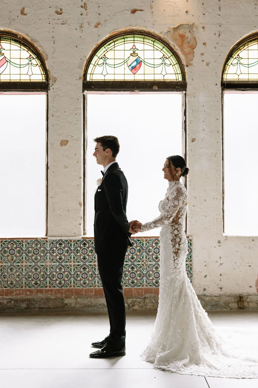 The ceremony took place at Sacred Heart Catholic Church in downtown Tampa, one of the city’s oldest and most stunning architectural landmarks. With its soaring vaulted ceilings, intricate stained glass, and grand presence, it was the perfect setting for Ally and Jake’s vows.