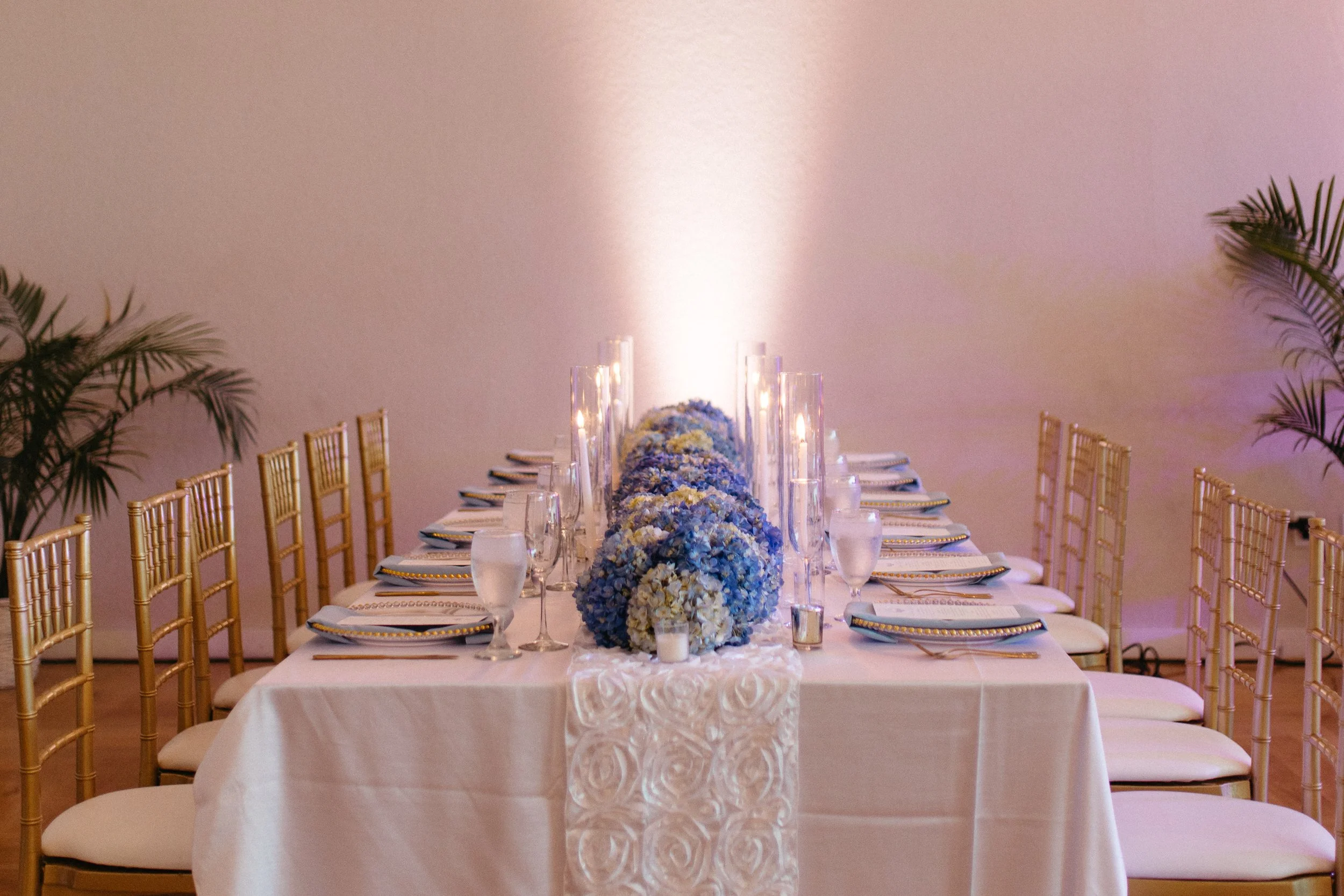 The reception was held in the Valencia ballroom and hydrangeas were the order of the day. Big, beautiful, blue, and white hydrangeas filled the tables. After dinner guests were treated to music performed by an eleven piece band.
